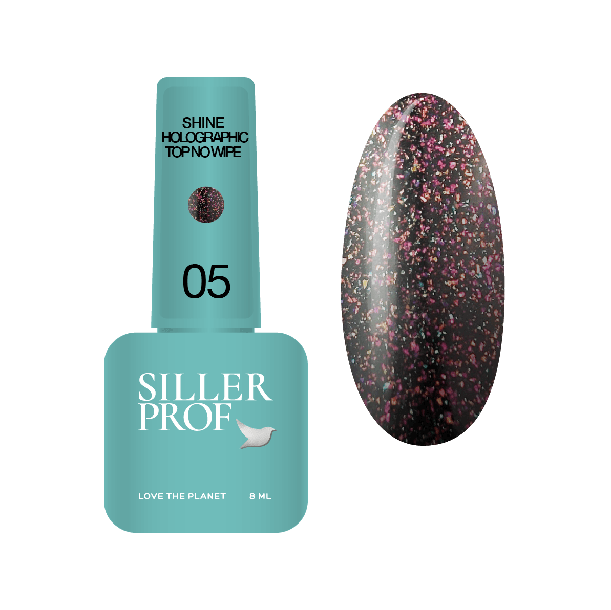 Siller Shine Holografic Top No Wipe – унікальне фінішне покриття без липкого шару, що містить дрібні голографічні частинки.
