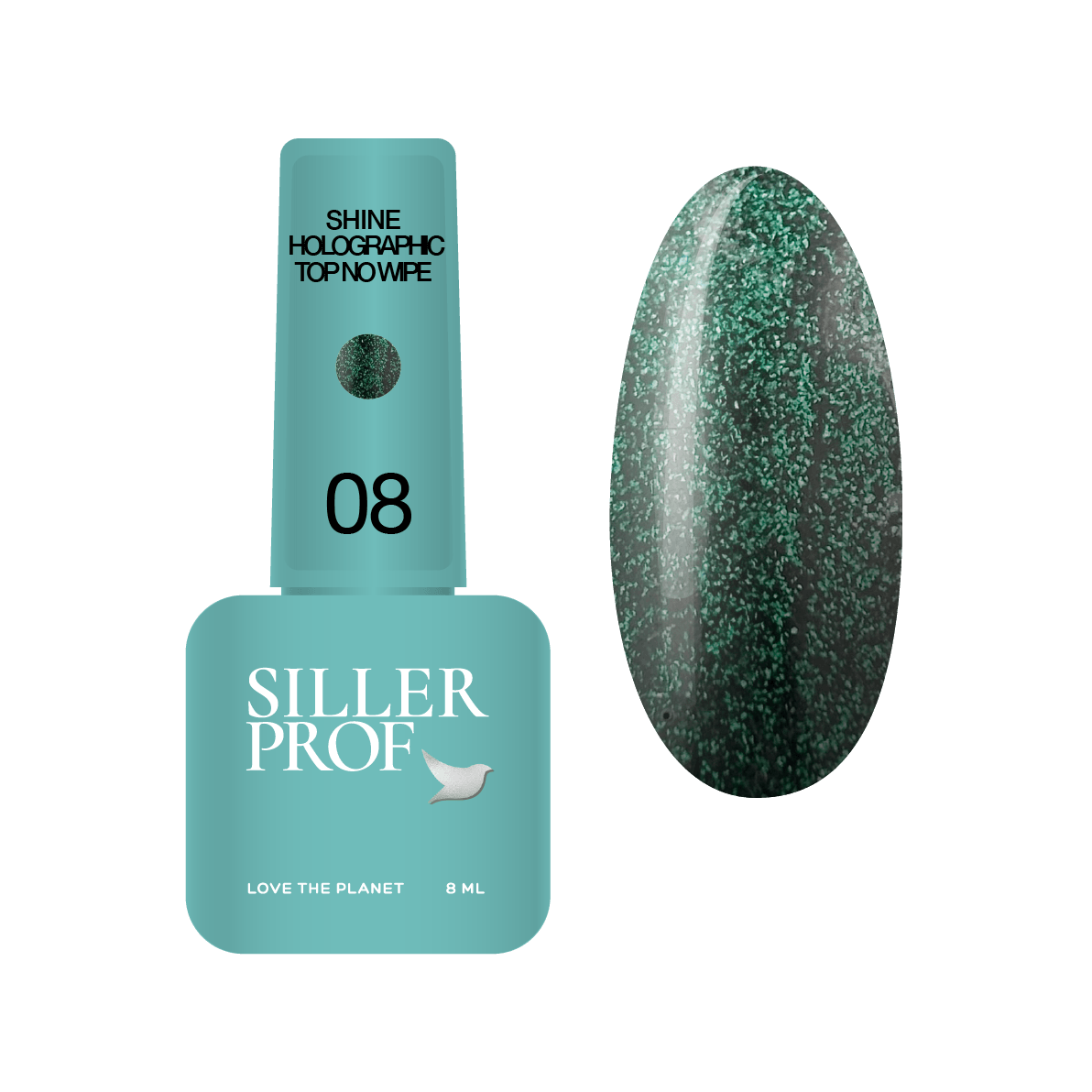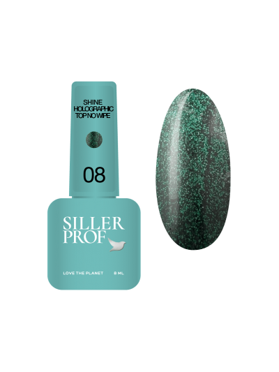 Siller Shine Holografic Top No Wipe – унікальне фінішне покриття без липкого шару, що містить дрібні голографічні частинки.